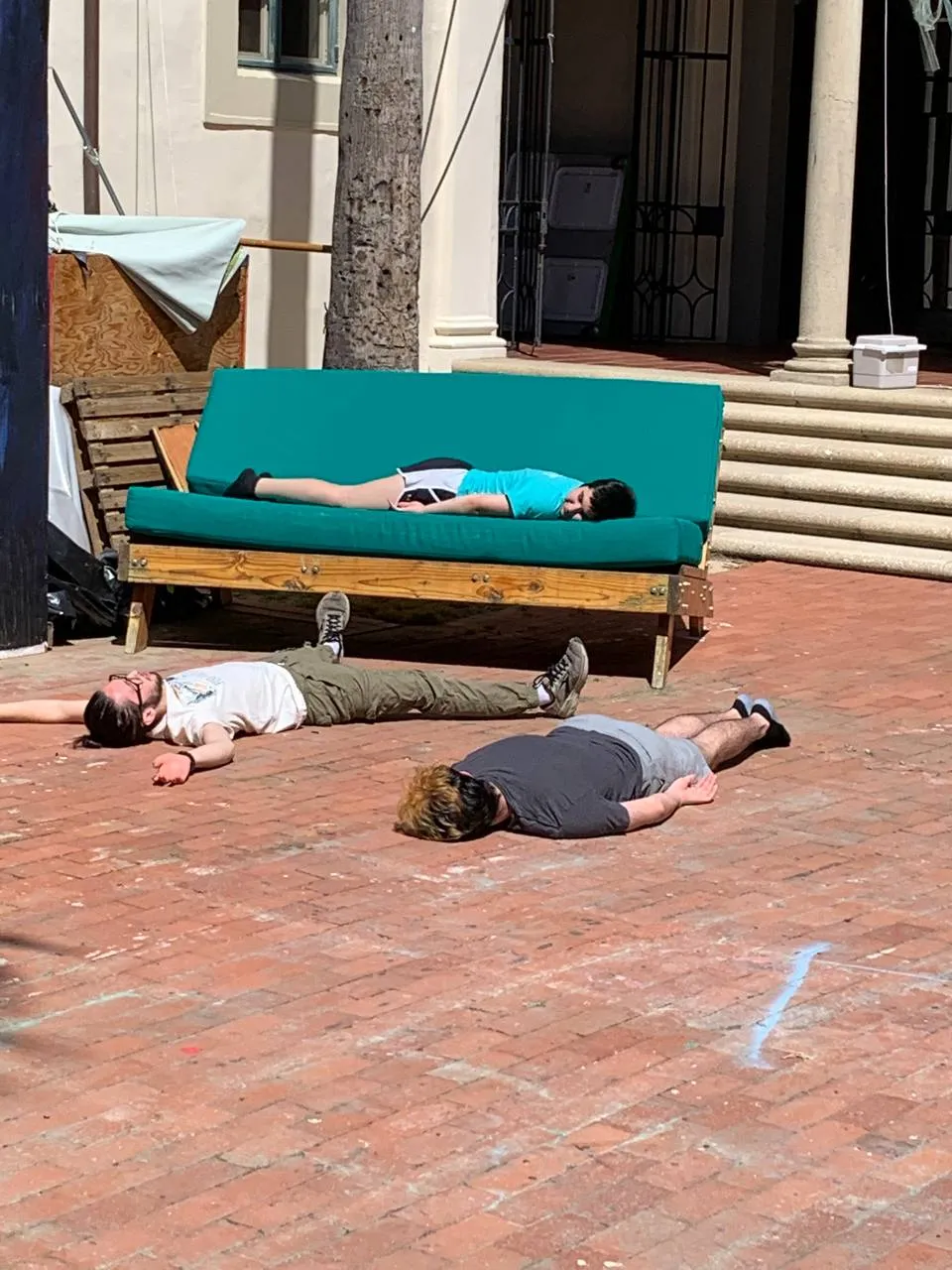 A group of darbs went see the new minions movie in yellow ponchos as an extremely low budget minion costume.